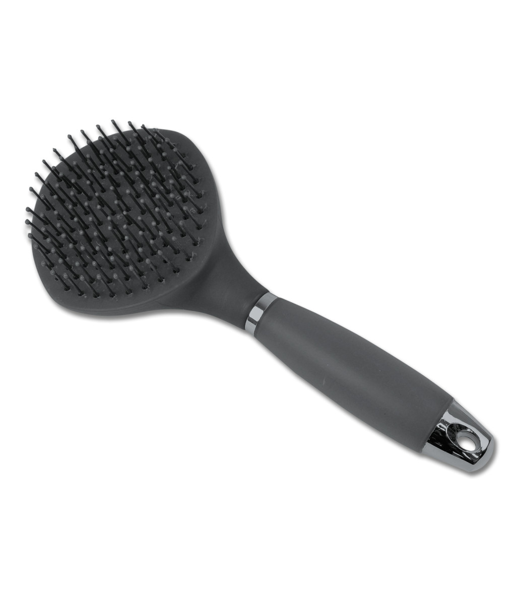A WH Zselés sörénykefe ergonomikus, zselés markolattal készült, amely biztos és kényelmes fogást garantál még nedves vagy sáros körülmények között is. Kiváló minőségű, sűrű sörtéi gyengéden, de hatékonyan távolítják el a szennyeződéseket és a gubancokat a ló sörényéből, elősegítve a szőrzet ápoltságát és egészséges megjelenését.