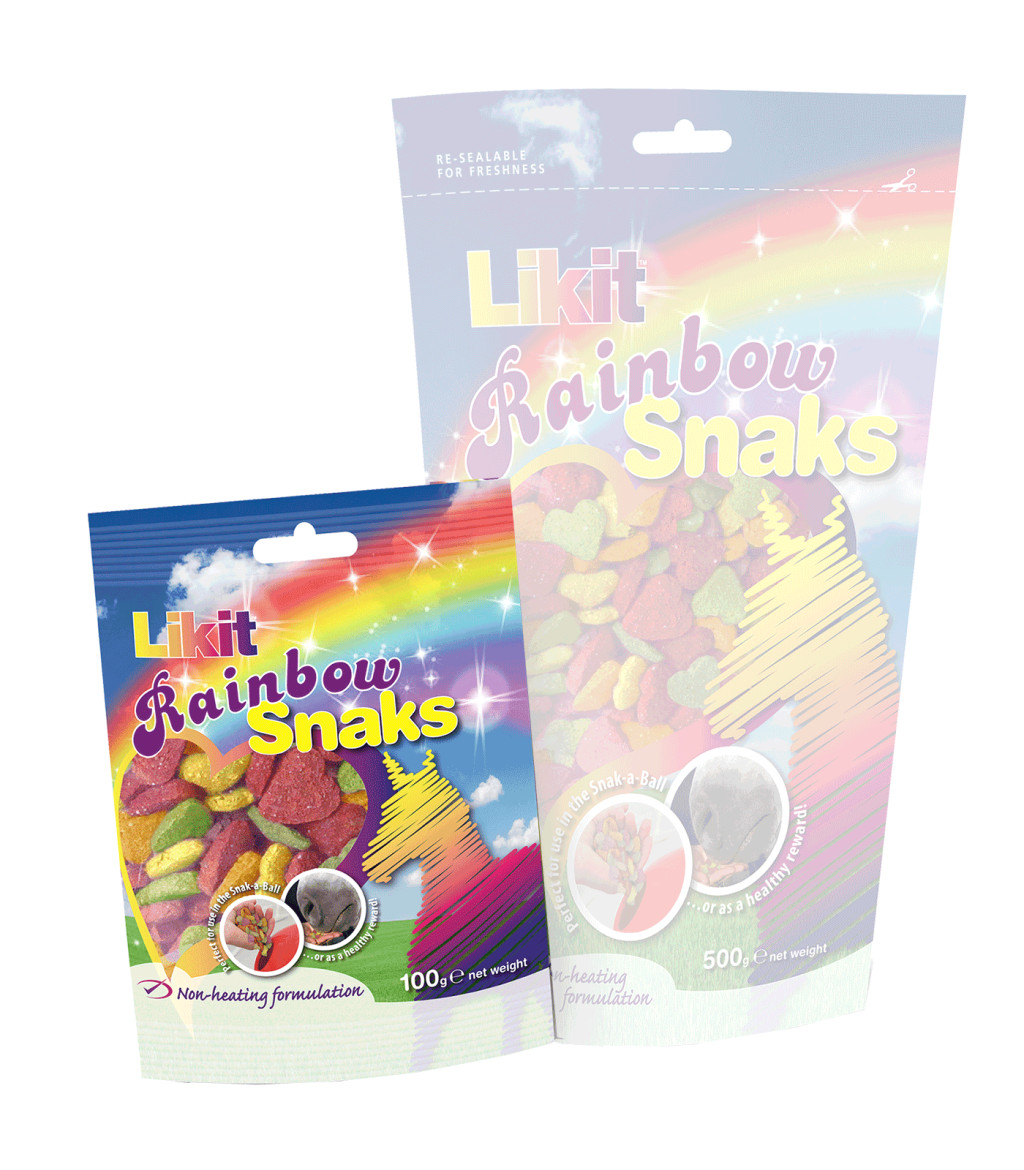 A Likit Snack Rainbow 100 g színes, rágós jutalomfalat lovak számára, amely változatos ízvilágával ösztönzi a rágást és a motivált jutalmazást. Kis mérete és rugalmas állaga lehetővé teszi a gyors és praktikus használatot edzés közben, miközben hozzájárul a fogak és az íny egészségének fenntartásához. Rendszeres alkalmazásával könnyen beilleszthető a mindennapi ápolási és tréning rutinba, fenntartva a ló komfortérzetét és motivációját.