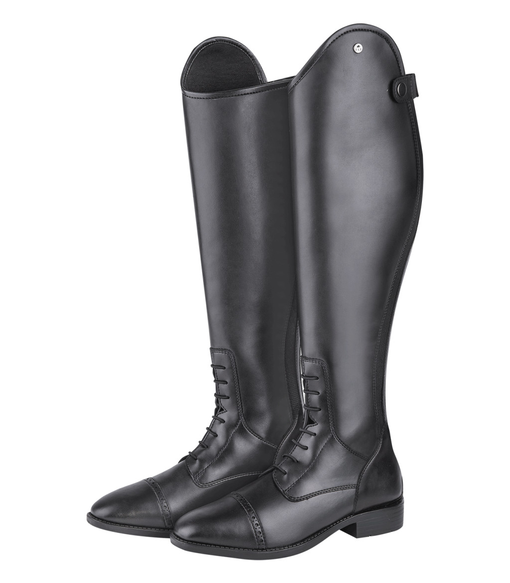 Az ELT Portland fekete lovaglócsizma sima bőrszerű felsőrésszel ( smooth leather look ) készül, amely vízlepergető bevonattal rendelkezik, így kültéri használatra is alkalmas. A belső bélés puha textilanyag, jól szellőzik, csökkentve a verejtékezés miatti komfortvesztést. A sarokrész kialakítása lovas sarok ( rider s heel ), amely támogatja a láb pozícióját a kengyelen. A talprész csúszásmentes gumiból készült, biztonságos járást biztosít istállóban és nyeregnél egyaránt.A csizma hátul cipzárral nyílik, amely hosszú variánsban további elasztikus betétekkel egészül ki a jobb illeszkedés és könnyű fel- és levétel érdekében. Derbyn fűzős rész a lábközép táján segít az egyéni állítgatásban. A lábujjhegy perforációs dekoráció ( Lyra perforations ) biztosít vizuális díszítést, a sarok megerősítése pedig fokozott tartósságot garantál.