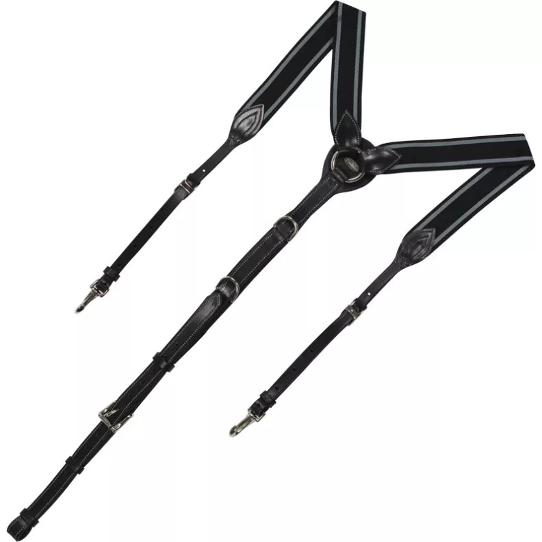 Elasztikus Bremen szügyelő erős bőrrel és rugalmasságot biztosító válltártással, Pony-Cob-Full méretekben. Színváltozatok: fekete-ezüst, sötétbarna-arany, tobacco-arany. Rozsdamentes acél csatokkal. Ideális stabil nyeregpozícióhoz, kényelmes mozgást biztosítva.