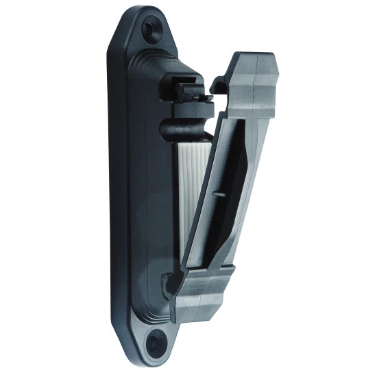Speciális villanypásztor szalagszigetelő, mely akár 40 mm széles szalagok rögzítésére is alkalmas, csúszásgátló gumibetétje pedig jelentősen meghosszabbítja a szalag élettartamát, mivel megakadályozza az elmozdulást és a kopást. A konstrukció teljesen UV-álló, így hosszú távú kültéri használatra fejlesztették, felszerelése pedig egyszerű: csavarozható vagy szegelhető bármilyen fa karóra ez nagy előnyt jelent legelőkerítések, lovas karámok építésénél. A profi clip biztosítja, hogy a villanypásztor szalag mindig feszesen és optimális magasságban maradjon, így hozzájárul a megbízható áramvezetéshez és a karám biztonságához