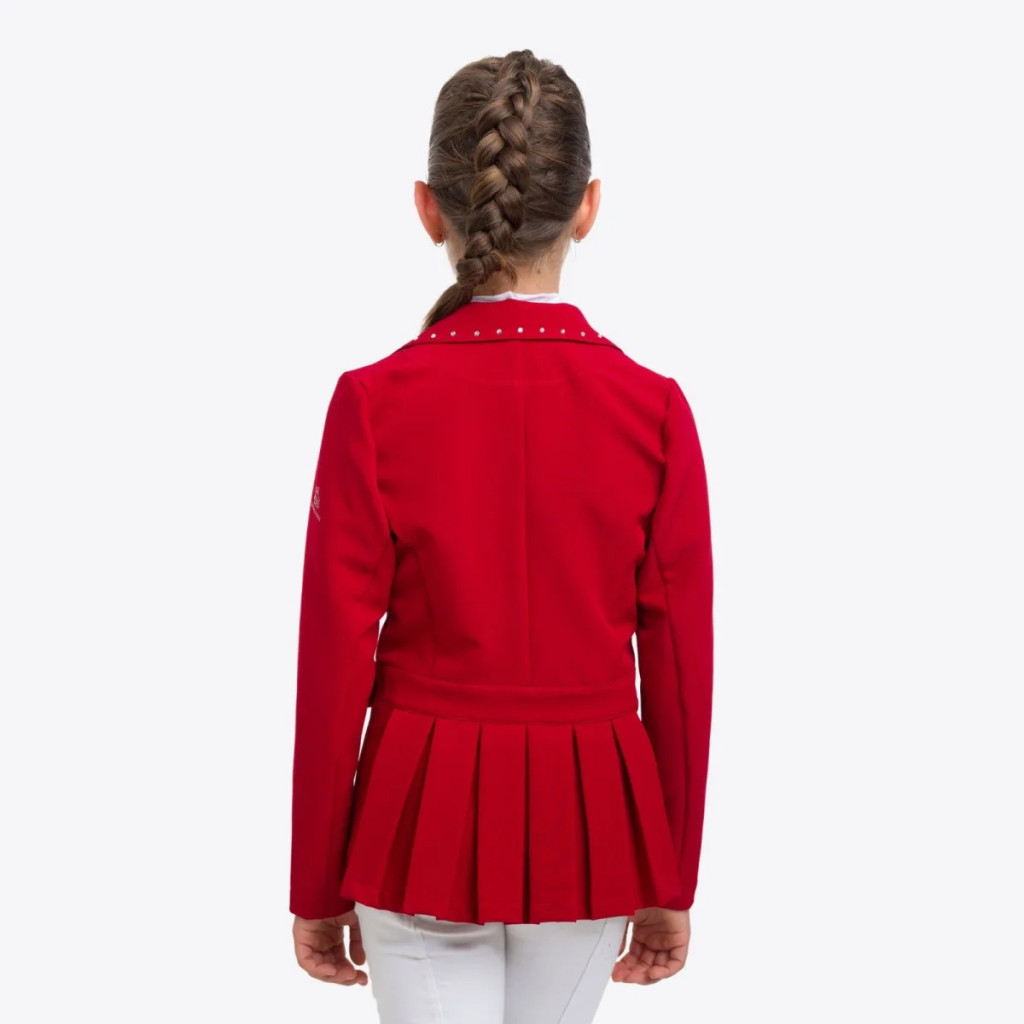 A Cavalliera rakott designnal tervezett zakója a legszebb zakó a piacon, ezért nem véletlen, hogy a legfiatalabb lovas hölgyeknek is ezt a modelt ajánljuk. A különleges szabást tovább díszítettük kristályokkal, hogy minden kislány kedvenc darabja lehessen. Anyaga légáteresztő, télen melegen tartja a testet, nyáron pedig kellemes viselet, köszönhetően a technikai alapú anyagának, amelyet spandexszel egészítettek ki a rugalmasság érdekében. Ezüst vagy rózsaarany kristályok díszítik a gallért.