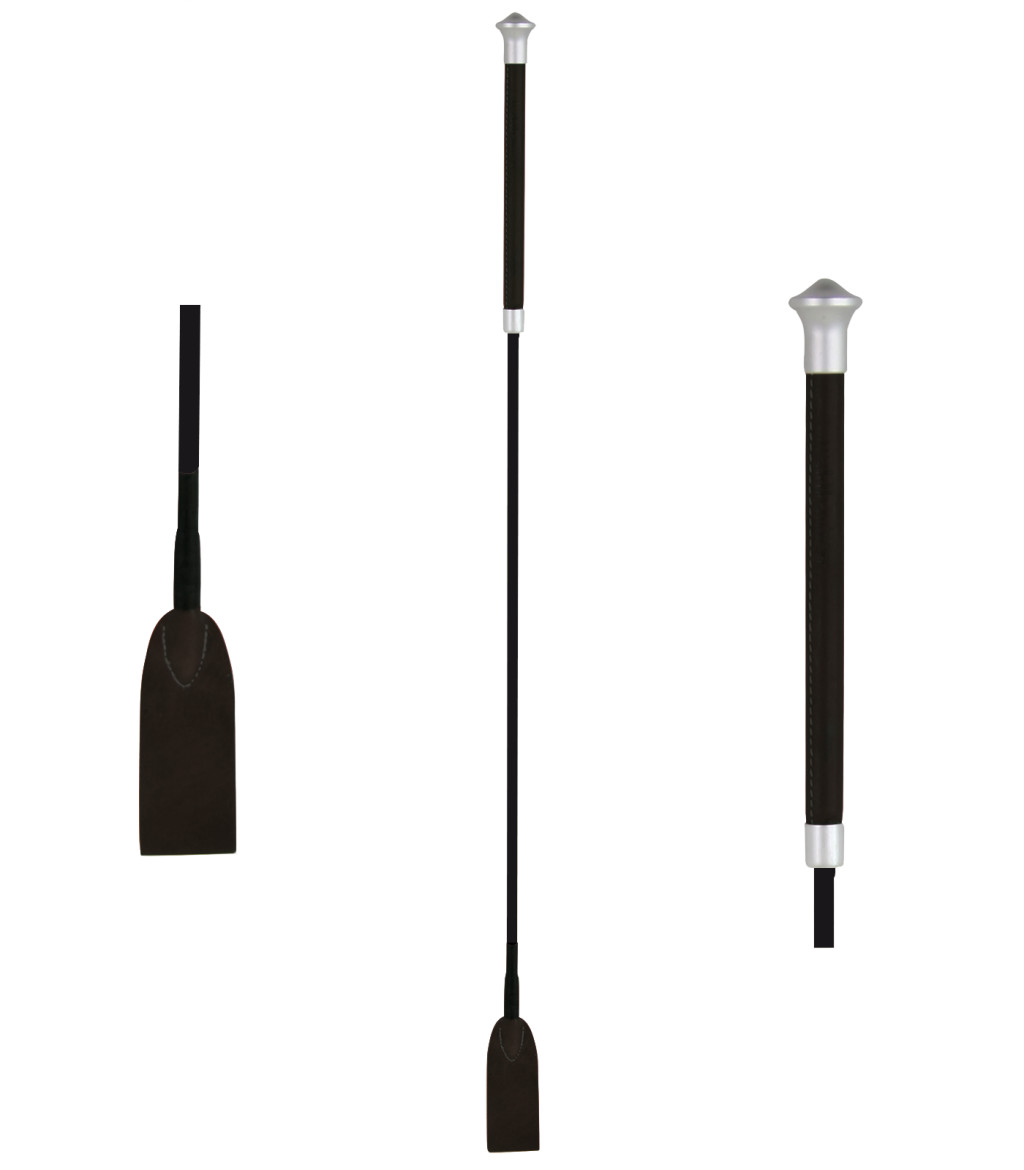 Finom, sima pálcatesttel készül, valódi bőrrel bevont markolattal, amely stabil, csúszásmentes fogást biztosít lovas számára. A pálca vége díszes fém kiegészítőkkel zárul.