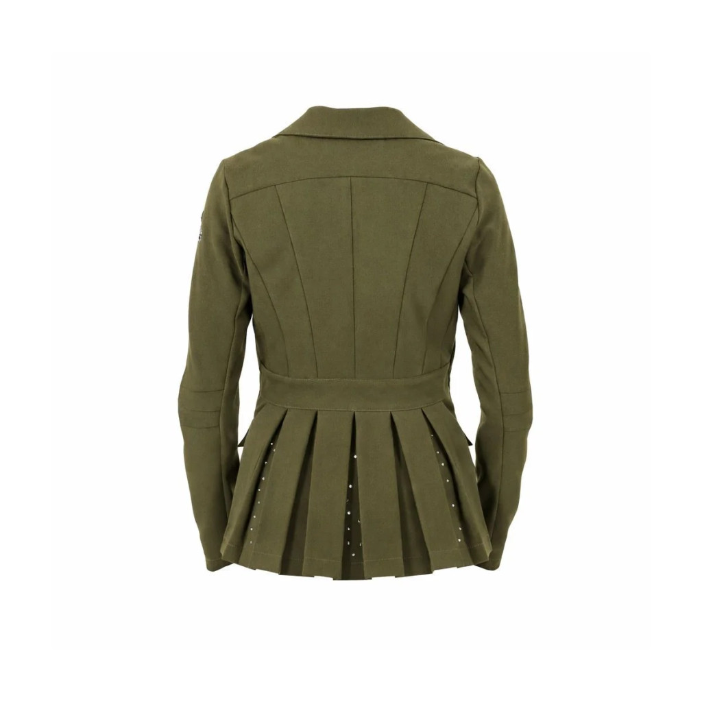 A legelegánsabb női versenyzakó, amely minden szakágban (díjugratás, díjlovaglás...) szemet gyönyörködtető megjelenést biztosít a lovasnak. Nem csak különleges, rakott hátú fazonjával emelkedik ki minden más zakó közül, hanem funkcionalitásában is mesterien támogatja viselőjét. Ebben a kristályos zakóban a gyönyör és a kényelem, valamint a tartósság együtt jár. Olyan mesteri módon ékesítik ezt a zakót az apró részletek, mint: raglán varrás a vállon, szép ívet adó hátvarrás, és rejtett kristályok a hátsó rakott részben és a zakó hajtókáján. Igazi mestermunka. Egy örök darab, amit viselője sohasem fog megunni.