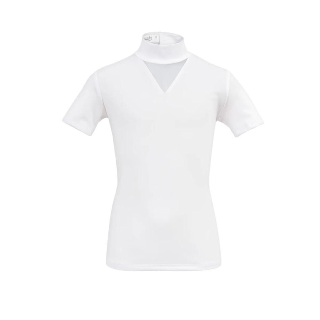 Elegáns kis ékszer lovas versenying lányoknak, mely minden versenyzakót feldob. V alakú, fehér mesh-sel bélelt elülső részén kristály fűzérből formáztunk csepp alakot, hogy ékszerként ragyogjon a kis lovas lányokon a lovas versenyek alatt. A versenyinget technikai, finom, légáteresztő anyagból készítettük, mely maximális komfortot és rugalmasságot biztosít a fiatal lovasnak. (A kristály díszítés megfelelő technikával, stabilan rögzített, a kristályok és a szerkezet mégis érzékeny lehet az erős behatásokra, ezért kérjük a gondos odafigyelést mosásnál, javasoljuk mosó hálóban, könnyű programmal vagy kézzel mosni.)