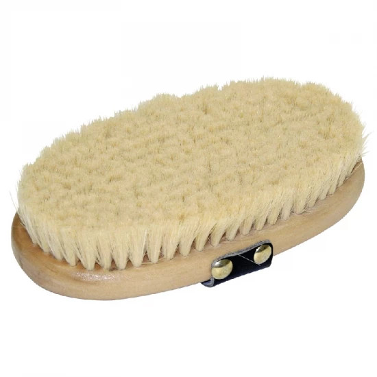 Ez a kefe hatékonyan eltávolítja a port, a szennyeződéseket és a kihullott szőrt, miközben fokozza a szőrzet természetes fényét. Valódi kecskeszőrből készült, hihetetlenül gyengéd tapintást biztosít, így ideális az érzékeny bőrű lovak számára. Kompakt, ergonomikus kialakítása kényelmes fogást biztosít, és lehetővé teszi a ló testének minden részének egyszerű ápolását.
