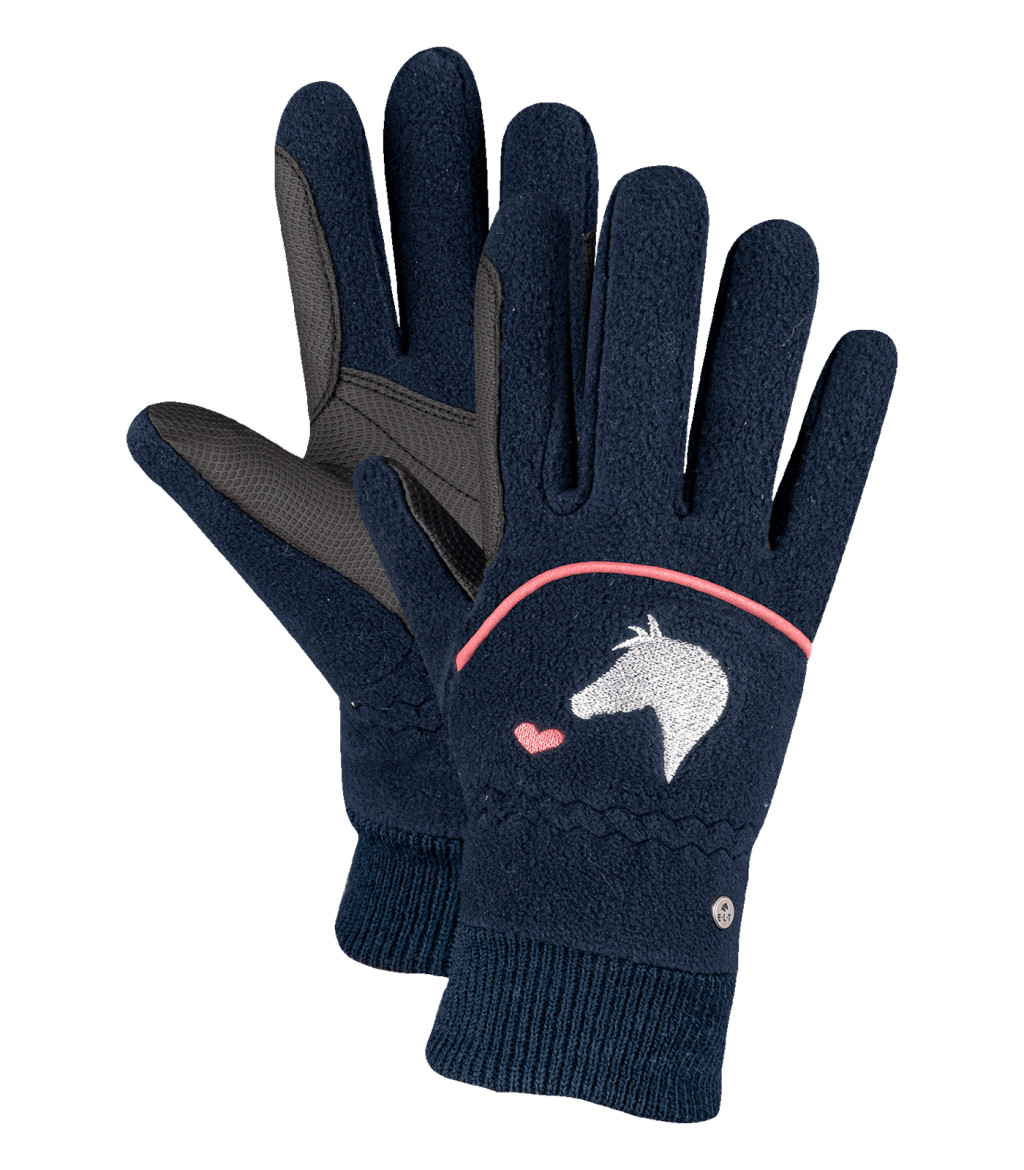 A Lucky Giselle polár lovaglókesztyű kifejezetten gyerekeknek készült. Belseje puha polár anyagból van, a kézfej Lucky Heart logós hímzése pedig vidám, stílusos megjelenést kölcsönöz. A kötött mandzsetta kényelmesen illeszkedik, a rózsaszín szegély pedig játékos, esztétikus részlet. A kesztyű szárazszár megerősítéssel rendelkezik, így tartós és praktikus viselet a lovaglás során.