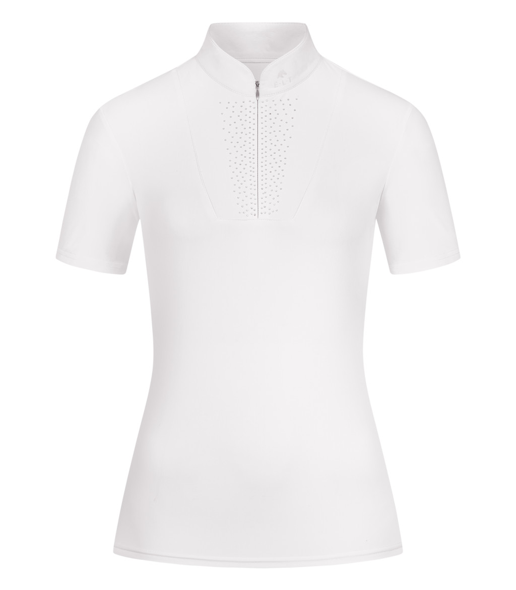 Az ELT Paola Competition Shirt rövid ujjú versenypóló 80 % polyamid és 20 % elasztán anyagból áll, ami rugalmasságot és jó légáteresztést biztosít. A szabása karcsúsított ( tailored fit ), hogy versenyen is tökéletesen illeszkedjen. A nyakkivágása álló gallér, amely rejtett cipzárral záródik, alulról látható zippel. A mellrészen díszítő strasszbetét található, a galléron és a hát felső részén csillogó E·L·T logó nyomat. Mosógépben mosható 30 °C-on, kifordítva ajánlott mosni