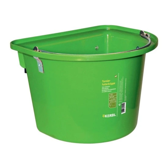 Kerbl 12 literes akasztós vödör füllel, strapabíró műanyagból. Oldalsó akasztófüllel, könnyű fogantyúval, ideális ivóvíz vagy takarmány kiadagolására.