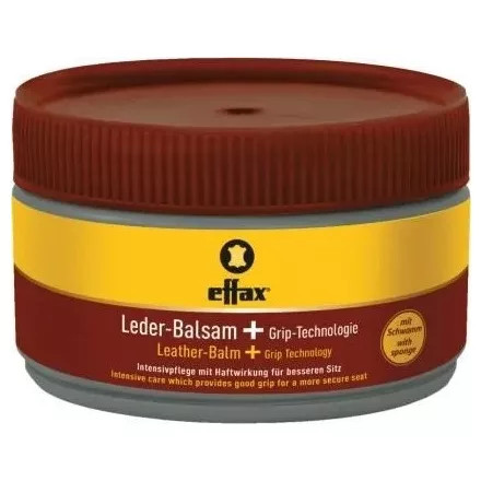 Az Effax Bőr Balzsam + Tapadássegítő egy innovatív bőrápoló termék, amely nemcsak mélyen táplálja és védi a bőrt, hanem javítja a lovas stabilitását is a nyeregben. Ez a kettős hatású formula tökéletes választás azoknak, akik extra tapadást és hosszabb élettartamot szeretnének biztosítani bőrfelületeiken legyen szó nyeregről, csizmáról vagy más bőrfelszerelésről.A természetes összetevők mint a lanolin, méhviasz és avokádóolaj intenzíven ápolják a bőrt, míg a hozzáadott tapadássegítő réteg láthatatlan, mégis érezhető segítséget nyújt az ülésbiztonságban.