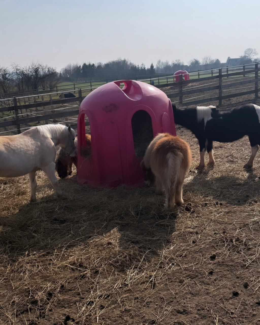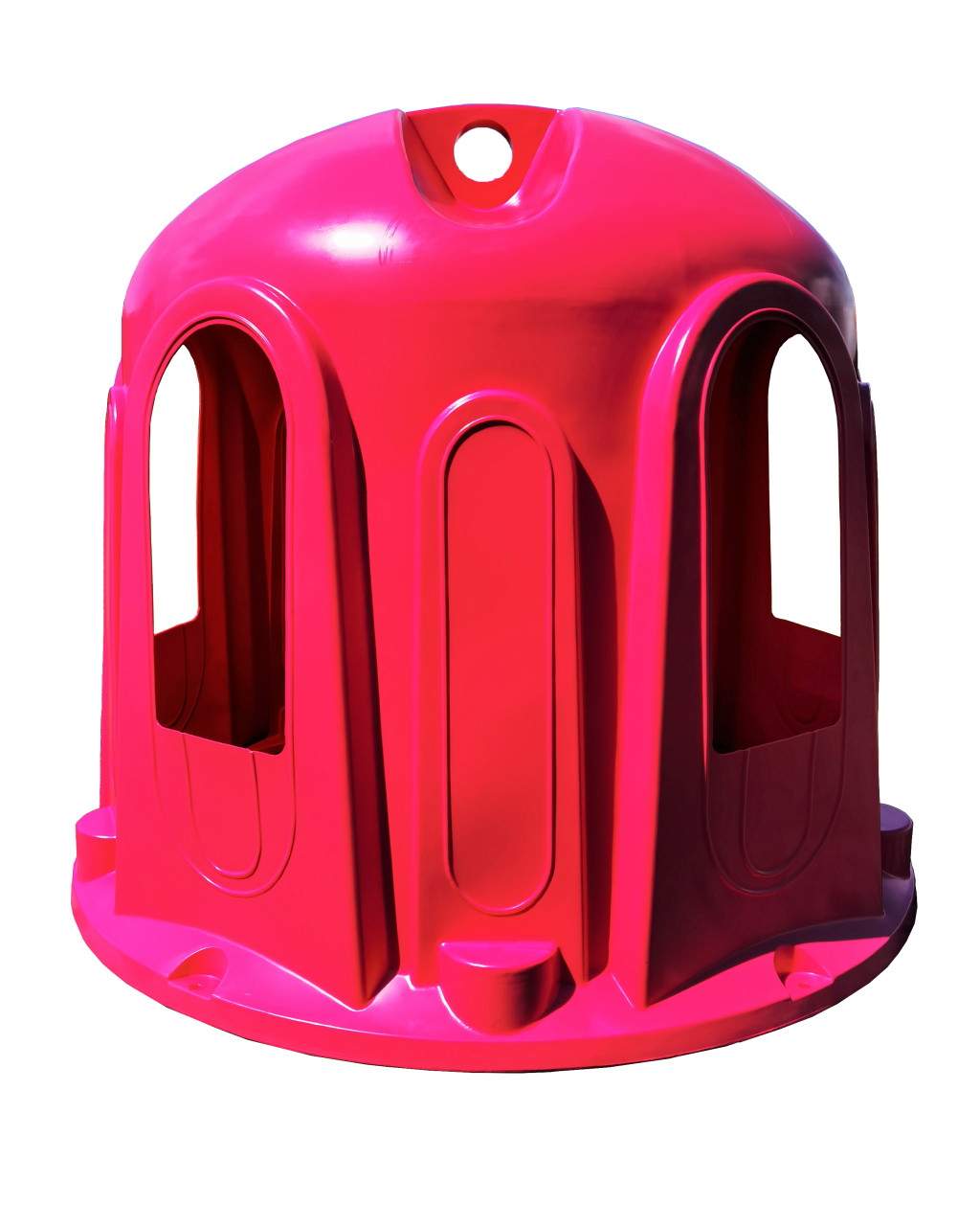A műanyag körbála etető legelőn használható, praktikus megoldás körbálázott széna kihelyezésére. Tartós kialakítása védi a bálát az időjárás hatásaitól, miközben segít csökkenteni a takarmánypazarlást.