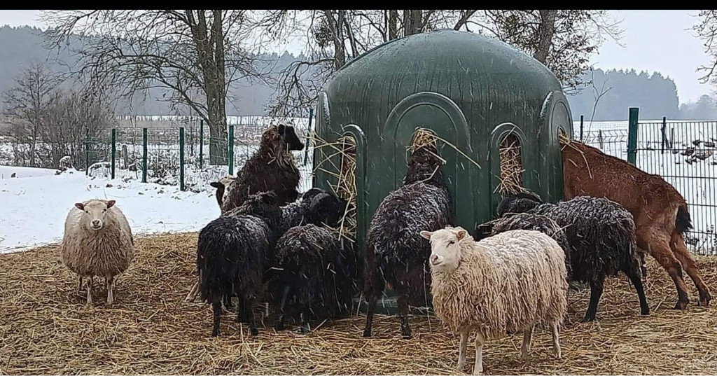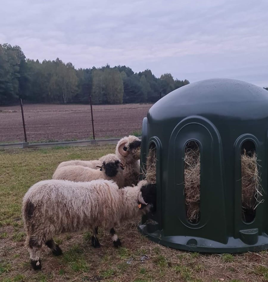 A műanyag körbála etető legelőn használható, praktikus megoldás körbálázott széna kihelyezésére. Tartós kialakítása védi a bálát az időjárás hatásaitól, miközben segít csökkenteni a takarmánypazarlást.
