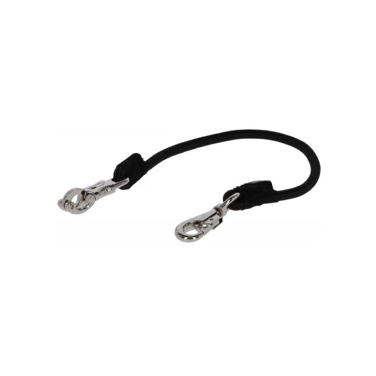 A KERBL elasztikus kikötő 70 cm hosszú, rugalmas kivitelű vezetőeszköz, amely biztosítja a ló korlátozott, de kényelmes mozgását kikötés vagy szállítás során. Az egyik végén masszív karabinerrel, a másikon pánikkapoccsal szerelt, így gyorsan és biztonságosan rögzíthető akár falhoz, akár szállítóhoz. A strapabíró gumibetét csillapítja a hirtelen rántásokat, csökkentve ezzel a sérülésveszélyt és a stresszt az állat számára.