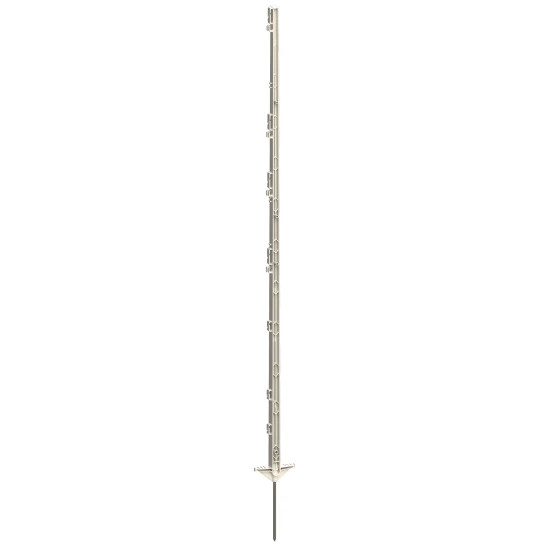 A KR443493 cikkszámú villanypásztor tartóoszlop 156 cm magas, megerősített műanyagból készült, 11 rögzítési ponttal, amelyek alkalmasak szalag, kötél és vezeték stabil tartására. A talajba szúró, horganyzott, 18-21 cm hosszú acél tüske biztosítja a stabil, szilárd rögzítést és tartósságot. Ez az oszlop kifejezetten lovas kerítésekhez ajánlott, UV-álló anyagból készül, így hosszú élettartamot biztosít kültéri használatban.